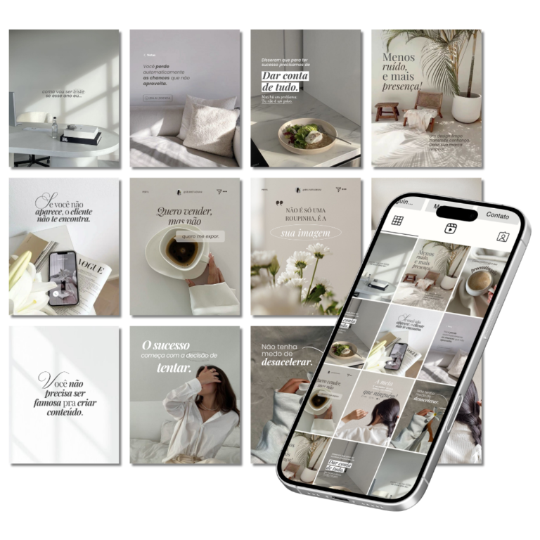 Acesse +300 templates minimalistas validados para atrair seguidores e converter clientes.